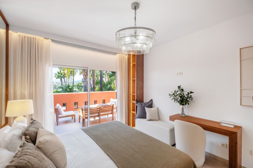 A beautifully reimagined 4-bedroom residence, fully renovated in 2025 with bespoke carpentry, a custom-designed kitchen with Miele appliances, and elegant contemporary finishes throughout. Located in one of the most exclusive gated communities on the Golden Mile, the property offers an exceptional standard of modern Mediterranean living. Every room is equipped with Airzone climate control and the bathrooms feature underfloor heating, ensuring year-round comfort.
