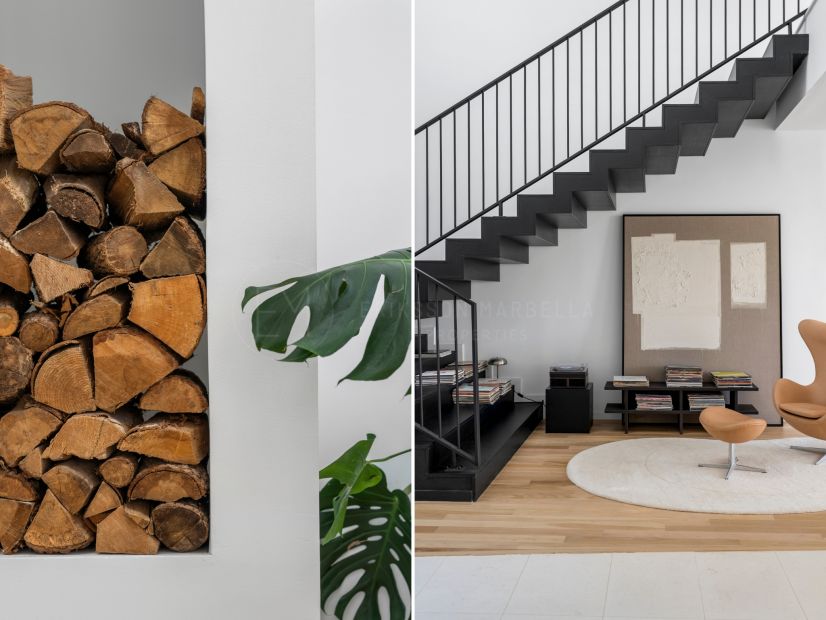 This semi-detached house seamlessly blends modern design and architectural details, creating a lifestyle of comfort, privacy, and sophistication. Located in the prestigious area of Sierra Blanca, right at the foot of La Concha mountain, you can enjoy panoramic views of the Mediterranean coast. The interior is surrounded by thoughtful details, elegant furnishings and bespoke features that combine practical living with aesthetic design, including a private wine cellar, a discreetly hidden laundry room, an exceptional walk-in closet and a private golf simulator, which can easily be converted into a private cinema.